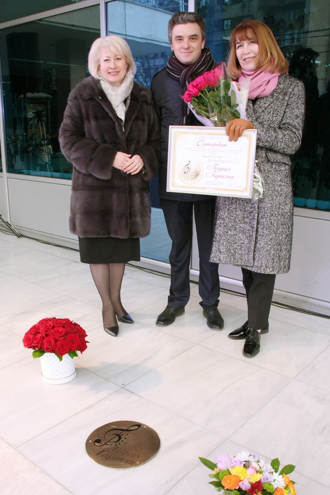 Сертификаты об открытии именных эмблем были вручены супругам – заслуженной артистке России Татьяне Гатовой и председателю Фонда Георгия Гараняна Нелли Закировой.