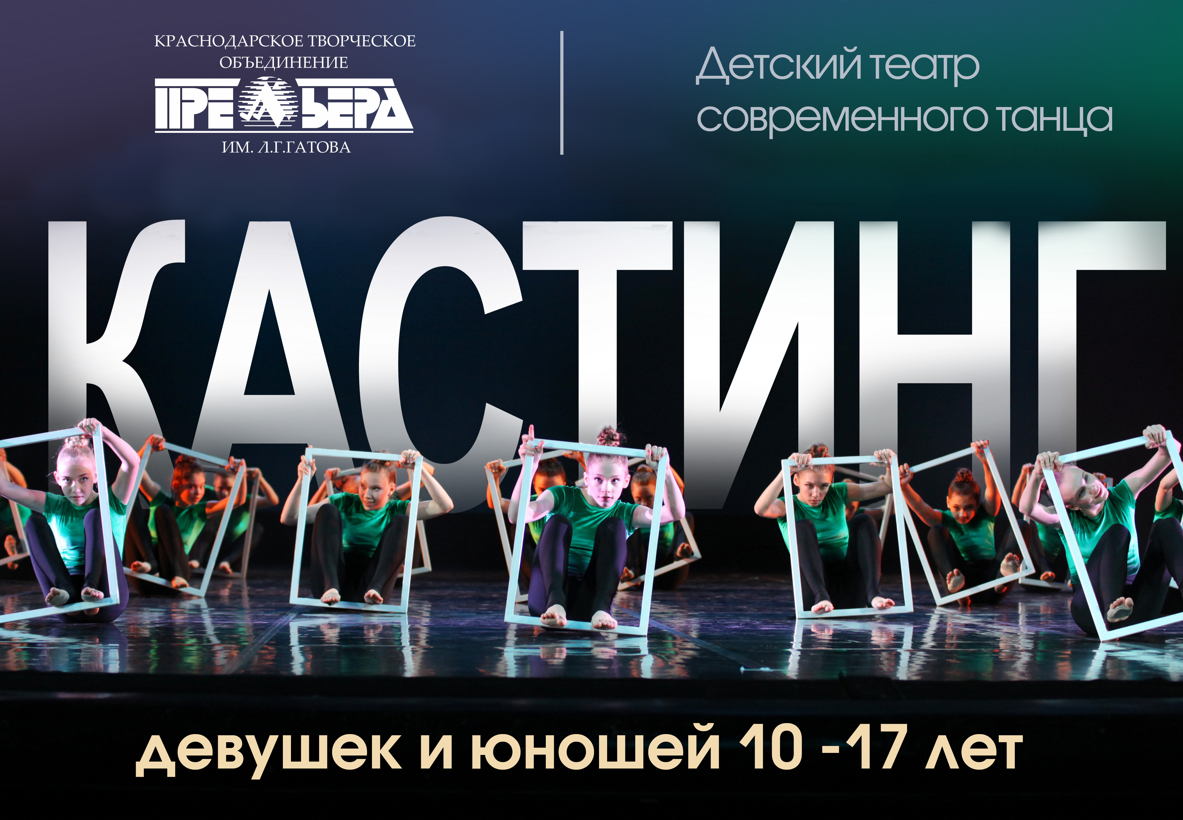 Музыкальный театр проводит кастинг девушек и юношей 10-17 лет с хореографической и гимнастической подготовкой для участия в новом спектакле детского театра танца «Оазис». Режиссёр- известный белорусский хореограф Ольга Лабовкина. Если ты талантлив, не упусти свой шанс принять участие в спектакле современного танца, который будет представлен на лучшей сцене Краснодарского края. Кастинг состоится 19 октября в 19.00 в Музыкальном театре. Всем желающим попробовать себя, приходить с тренировочной формой и обувью. При наличии собственного номера приносить фонограмму на флешке либо на телефоне. Справки по тел: 89885943432