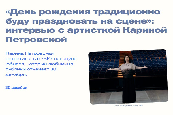 Карина Петровская встретилась с «КИ» накануне юбилея, который любимица публики отмечает 30 декабря. Смотреть на сайте.